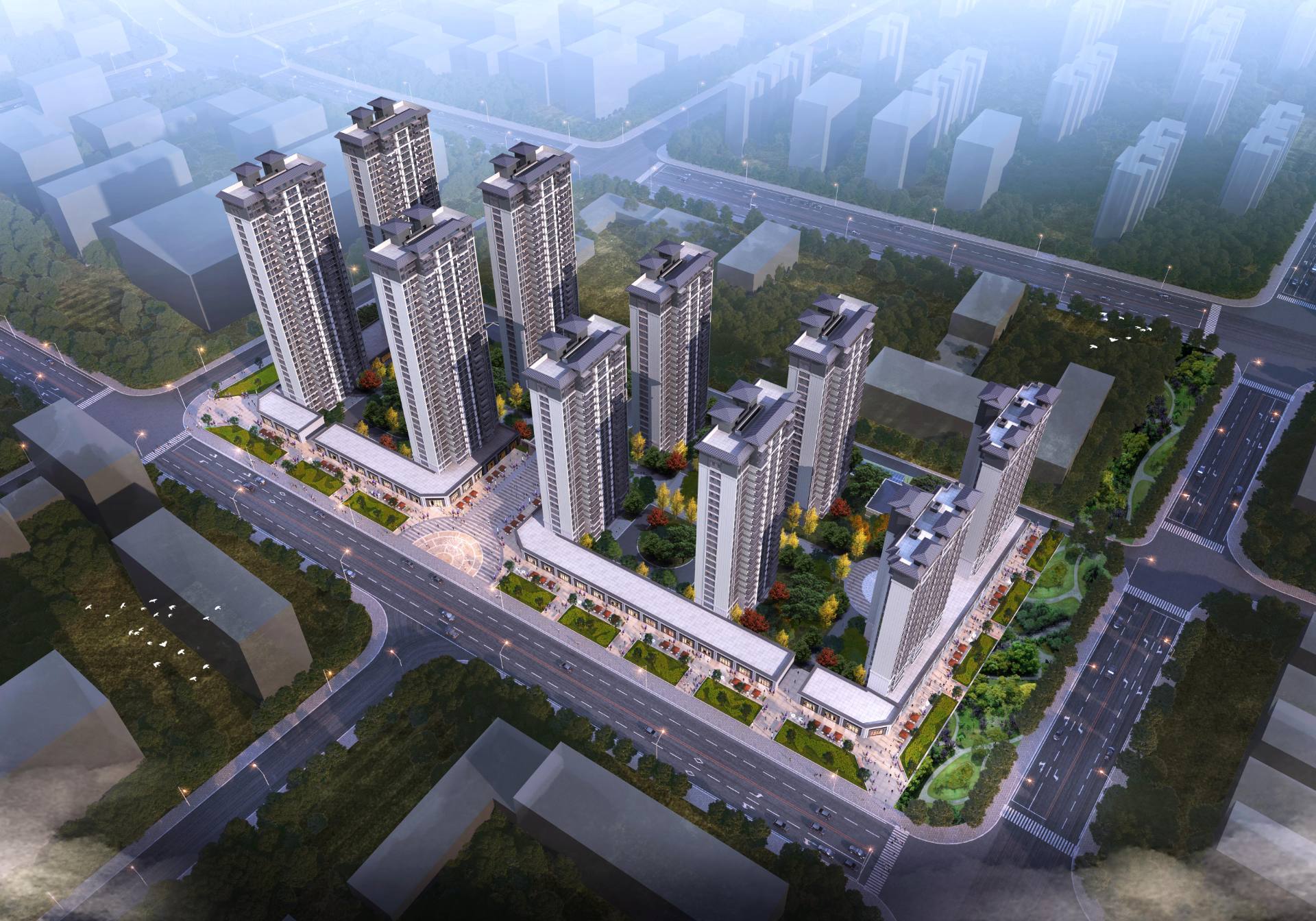 漢津城南郡項(xiàng)目位于蔡甸區(qū)蔡甸街成功二街與啟德路東南交匯處,總建筑面積150123.79㎡,計(jì)劃分兩期施工建設(shè),其中一期總建筑面積71264.44㎡,共設(shè)住房500戶;二期總建筑面積78859.35㎡,共設(shè)住房624戶。設(shè)置地下停車場(chǎng),配套車位為964個(gè),容積率2.99,綠化率30%。
